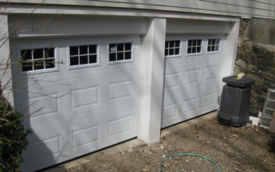 On the exterior, the new garage doors have been installed and we now have nice stairs leading up from the driveway to the mudroom: