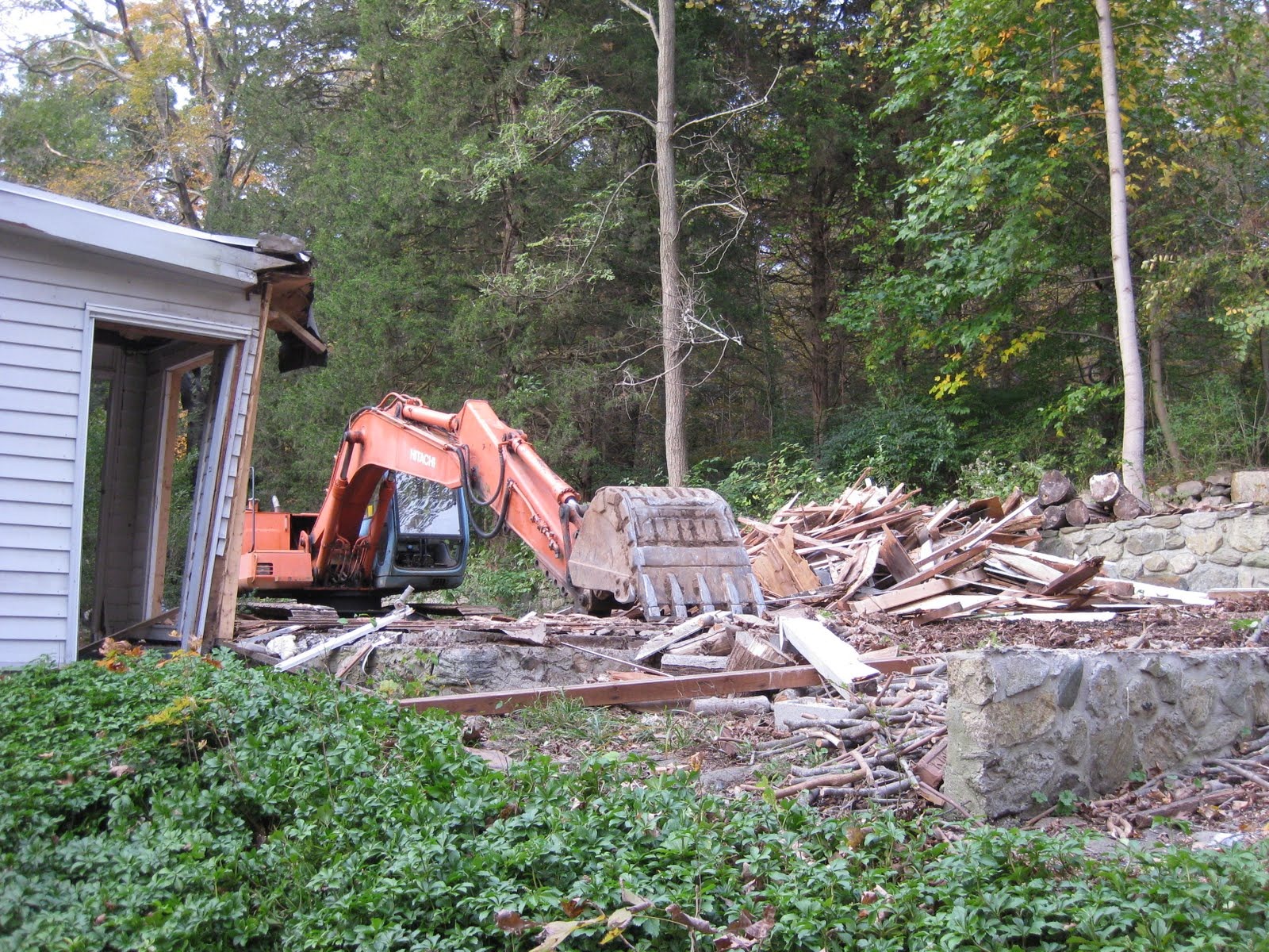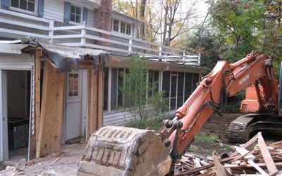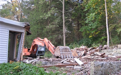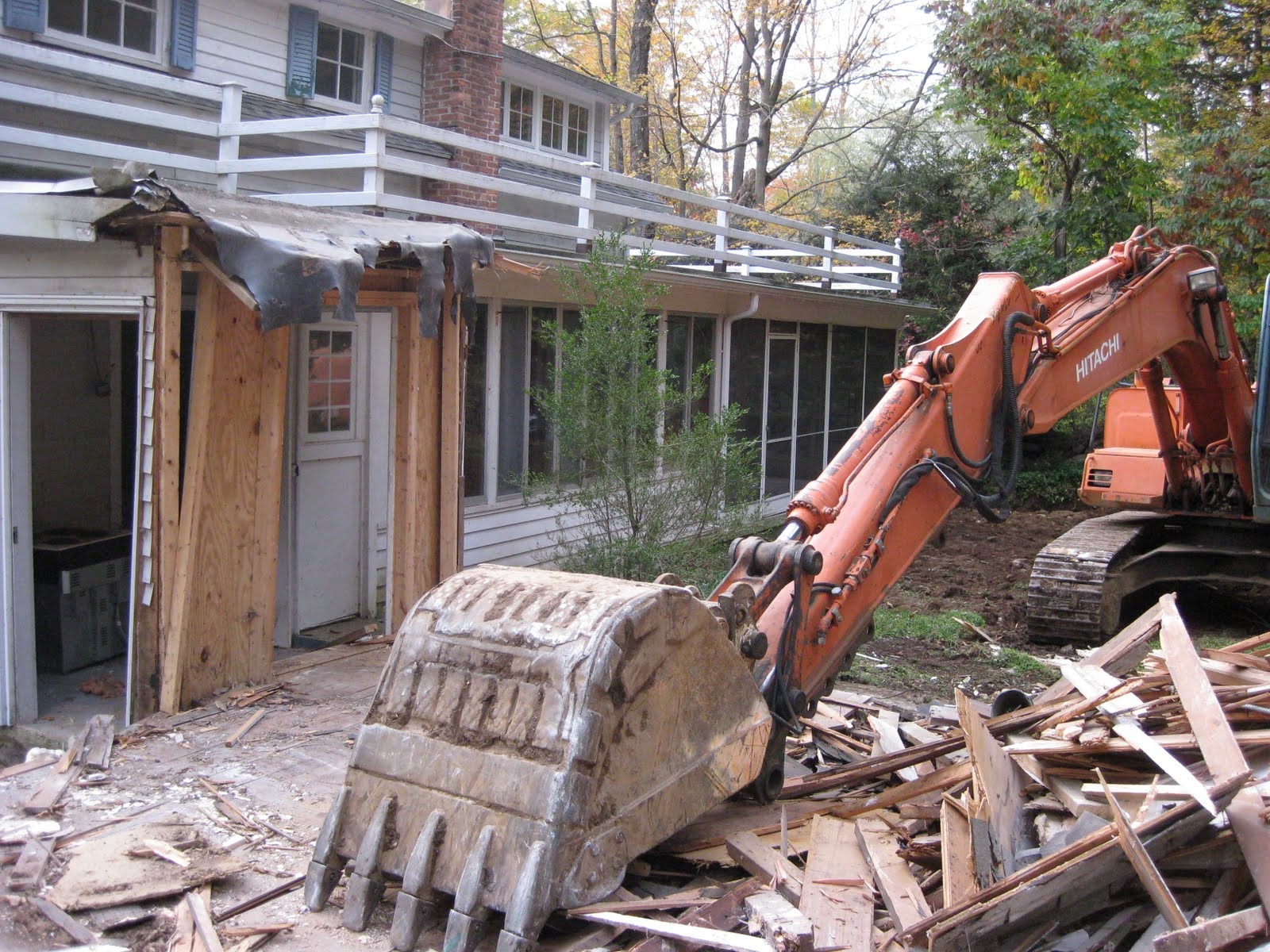 Here are some pictures from our first day of construction; The Shed is History!