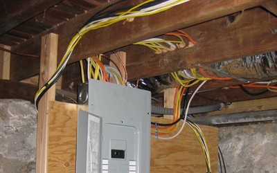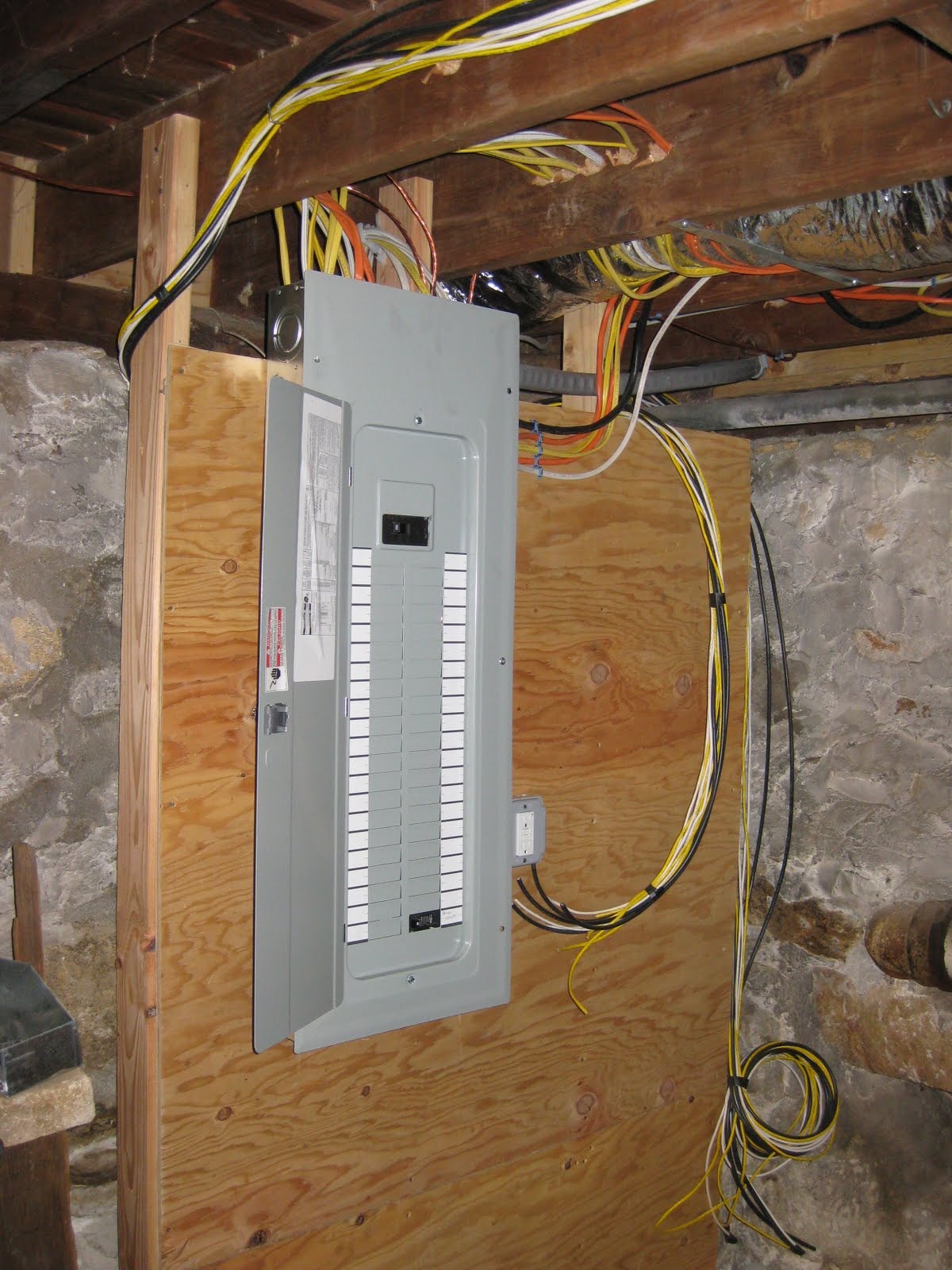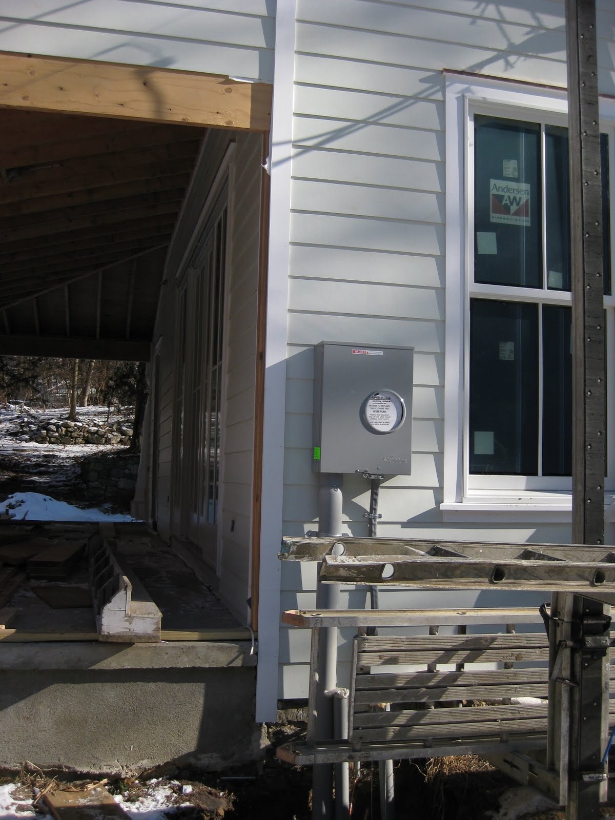 and here it is on the exterior; we decided to bring the main service into the house underground in order to do away with the wires draped in front of our house. So we will have this meter on the front: