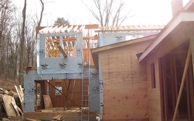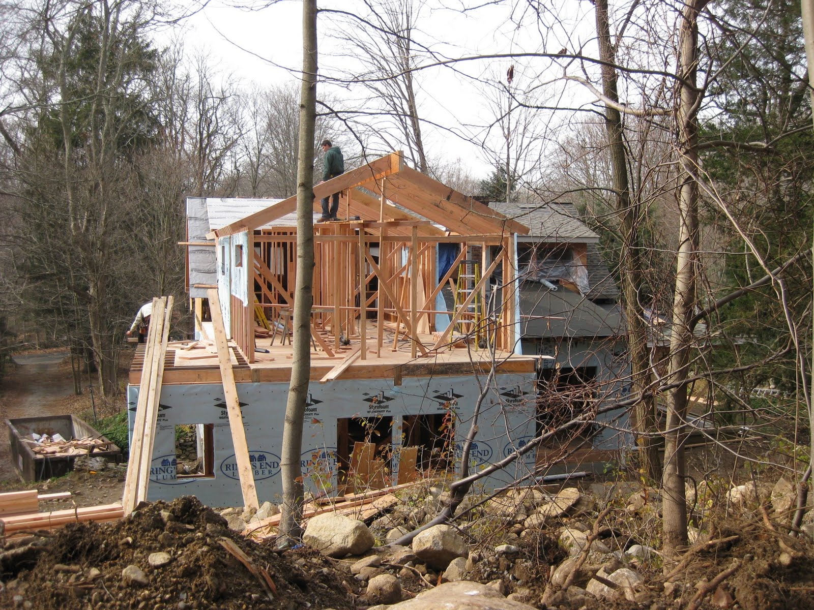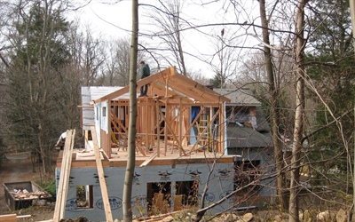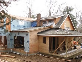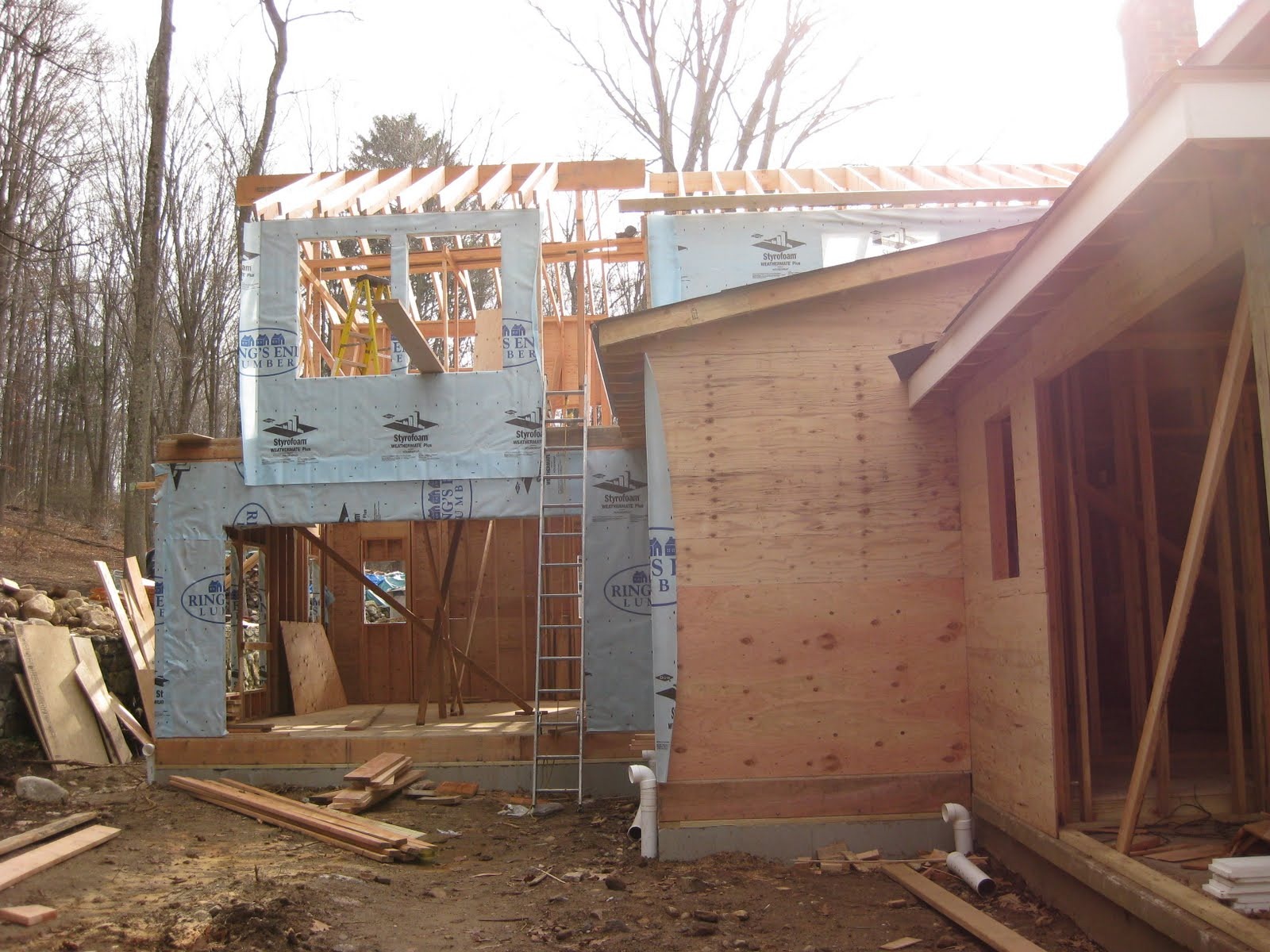 We were really looking forward to checking out the progress this week and since my last post I was hopeful that I would fine the upstairs beginning to be framed. When we got there on Saturday, we found our builders hard at work, but they had already framed most of the upstairs and were working on the rooflines of the addition: