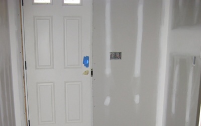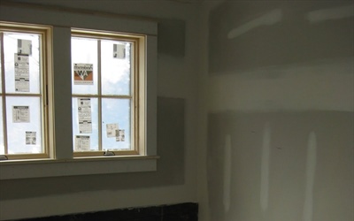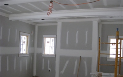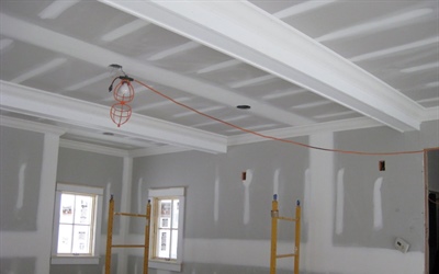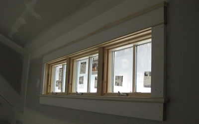 The project is buzzing lately with lots of craftsmanship-type efforts. Trimwork is going up, including crown molding, door and window trim and base trim: