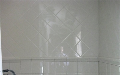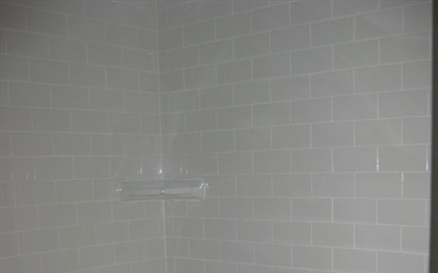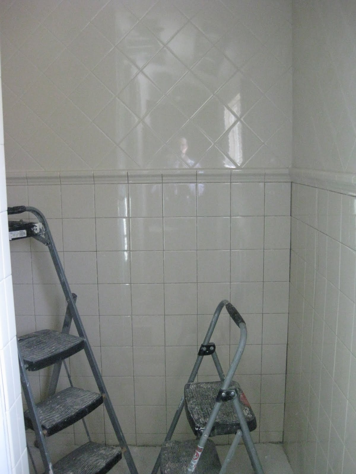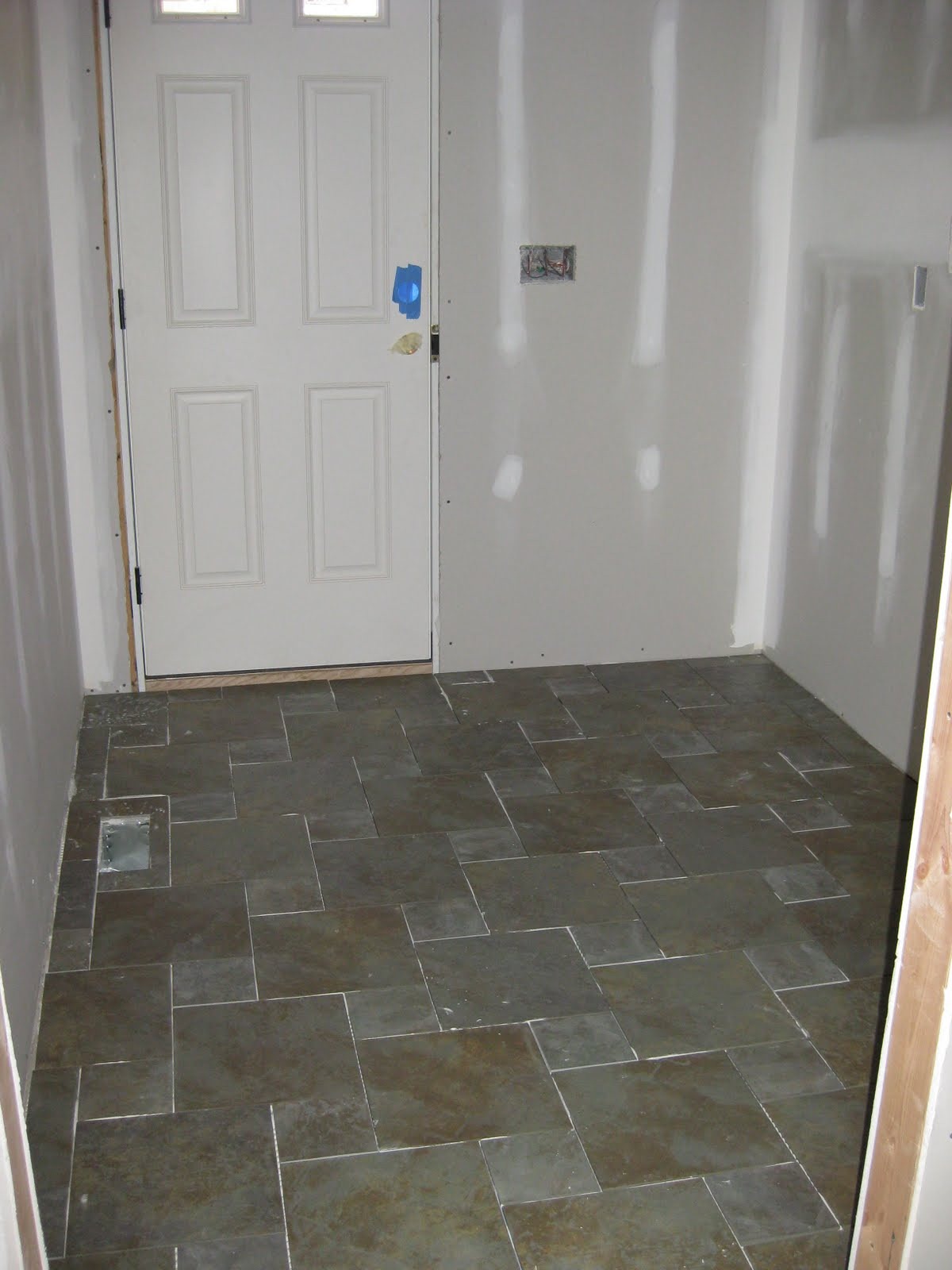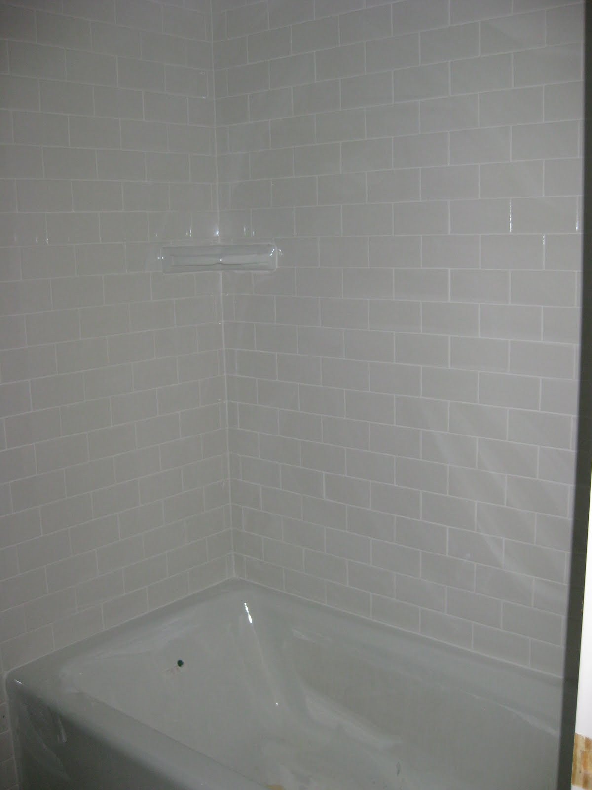 Also, there is a lot of tiling going on. The following pictures are the floor of the laundry room, the guest bath subway tile and the master bathroom shower: