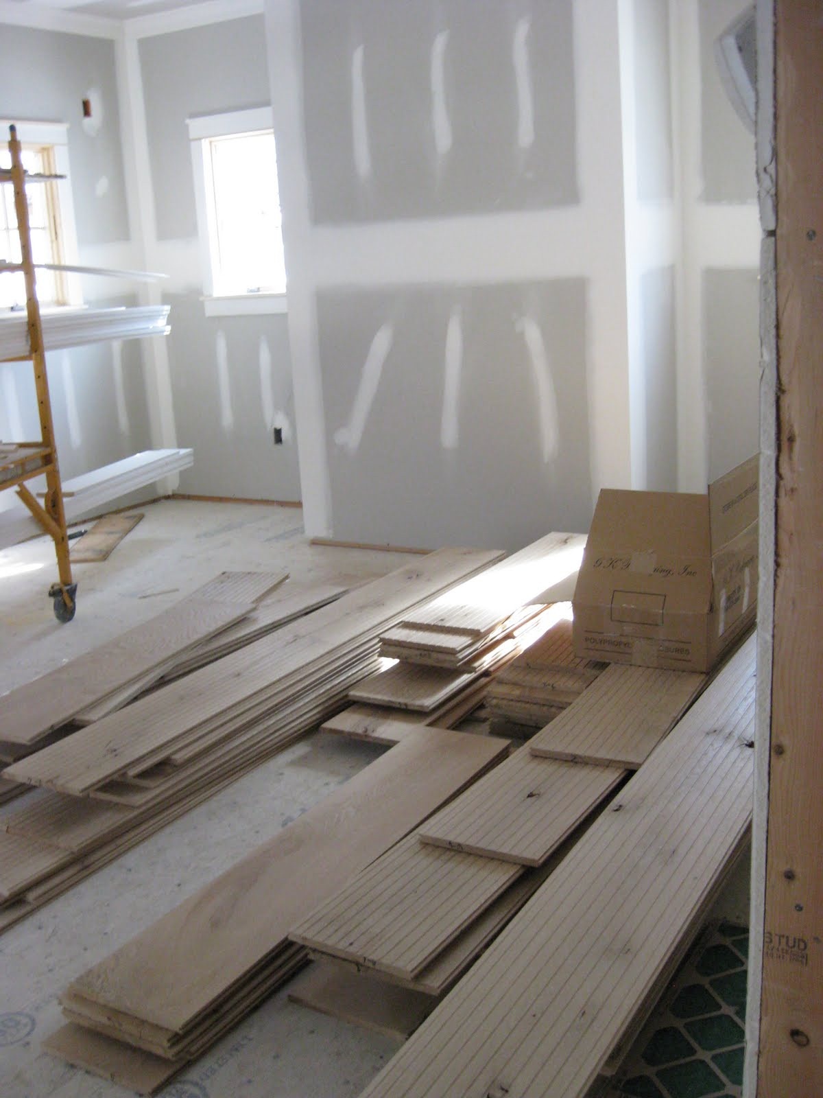 Finally, the wood flooring was delivered this past Wednesday. It will spend a week adjusting to the humidity of the house before installation begins on Wednesday. Here are some very nice pictures of the piles of wood. Not the most exciting pictures to post, but it is an important development in the process: