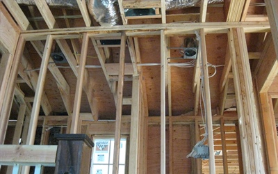 It was maybe 25 degrees when we did our site visit this morning; I can't figure out how anyone is working outside when it is that cold but somehow they are managing. It is no surprise that they are making huge progress on the heating system: the propane tank is installed, air handlers are in place and rough-ins are nearly complete. Also some lights and plumbing rough-ins are there. Here are some pics: