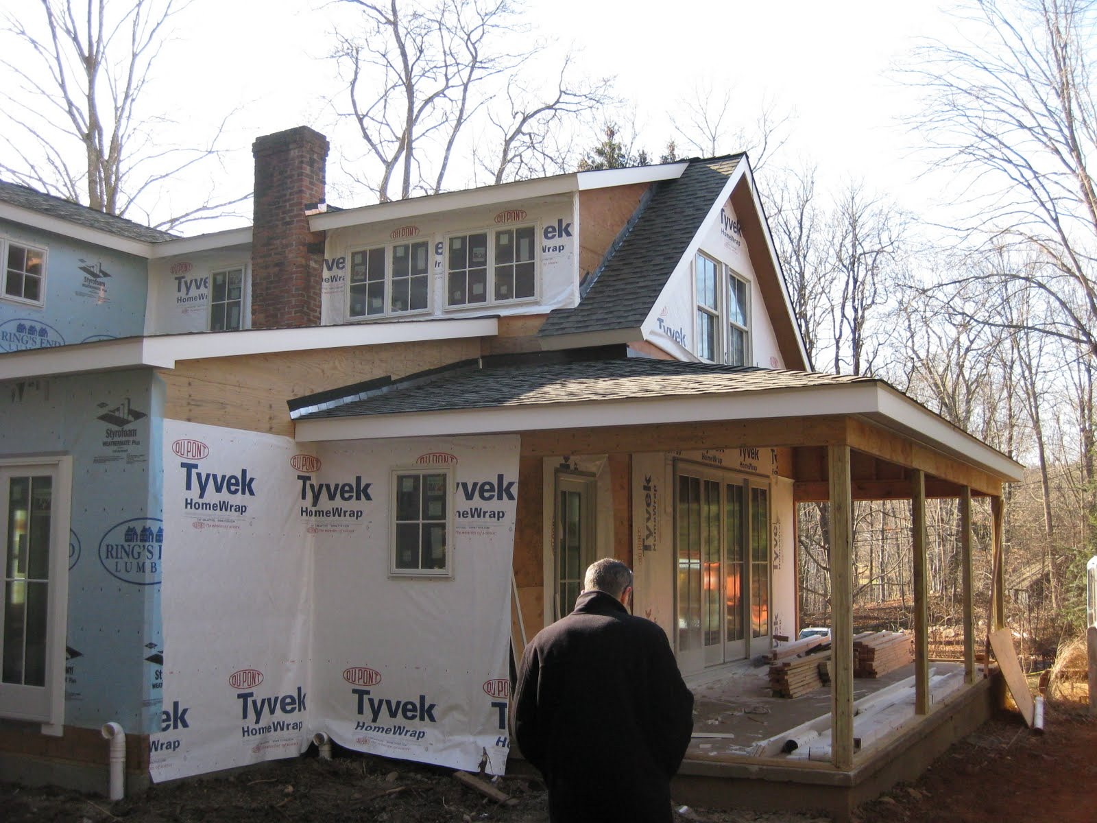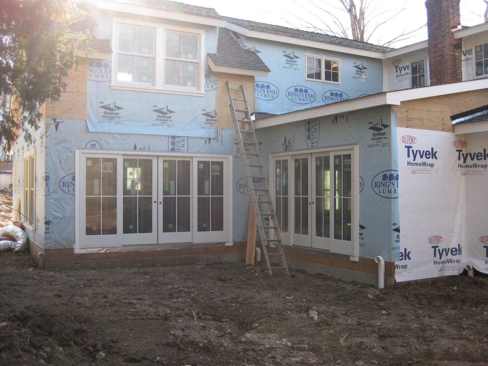 Here are some exterior photos, with the earth mover moved to the front I can show you a different perspective of the house from the back courtyard: