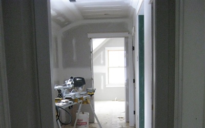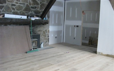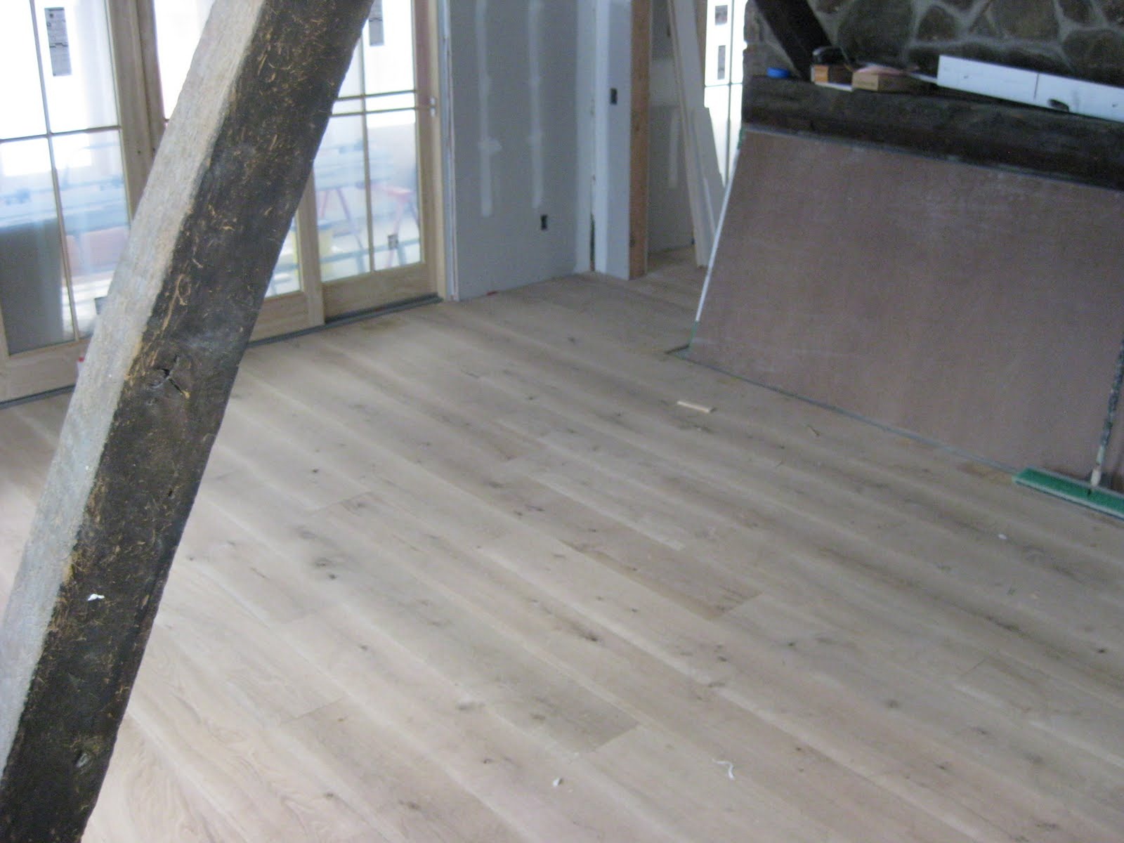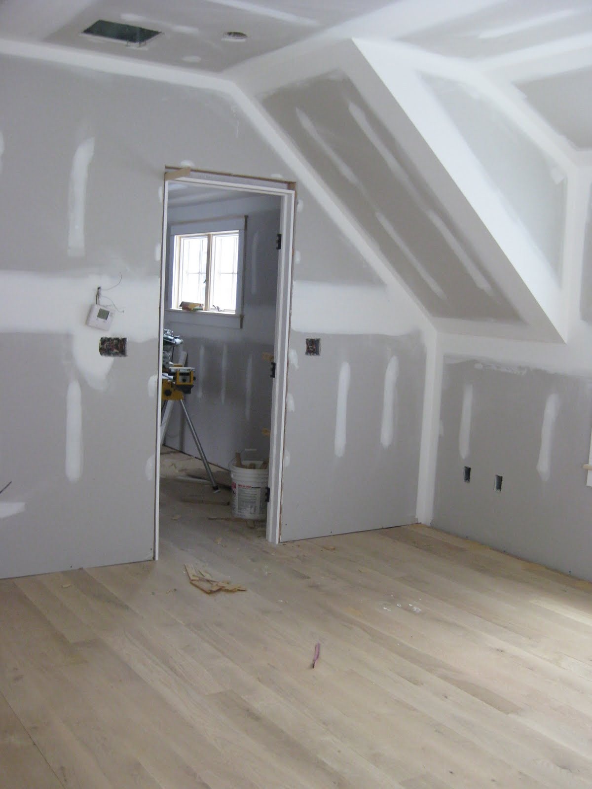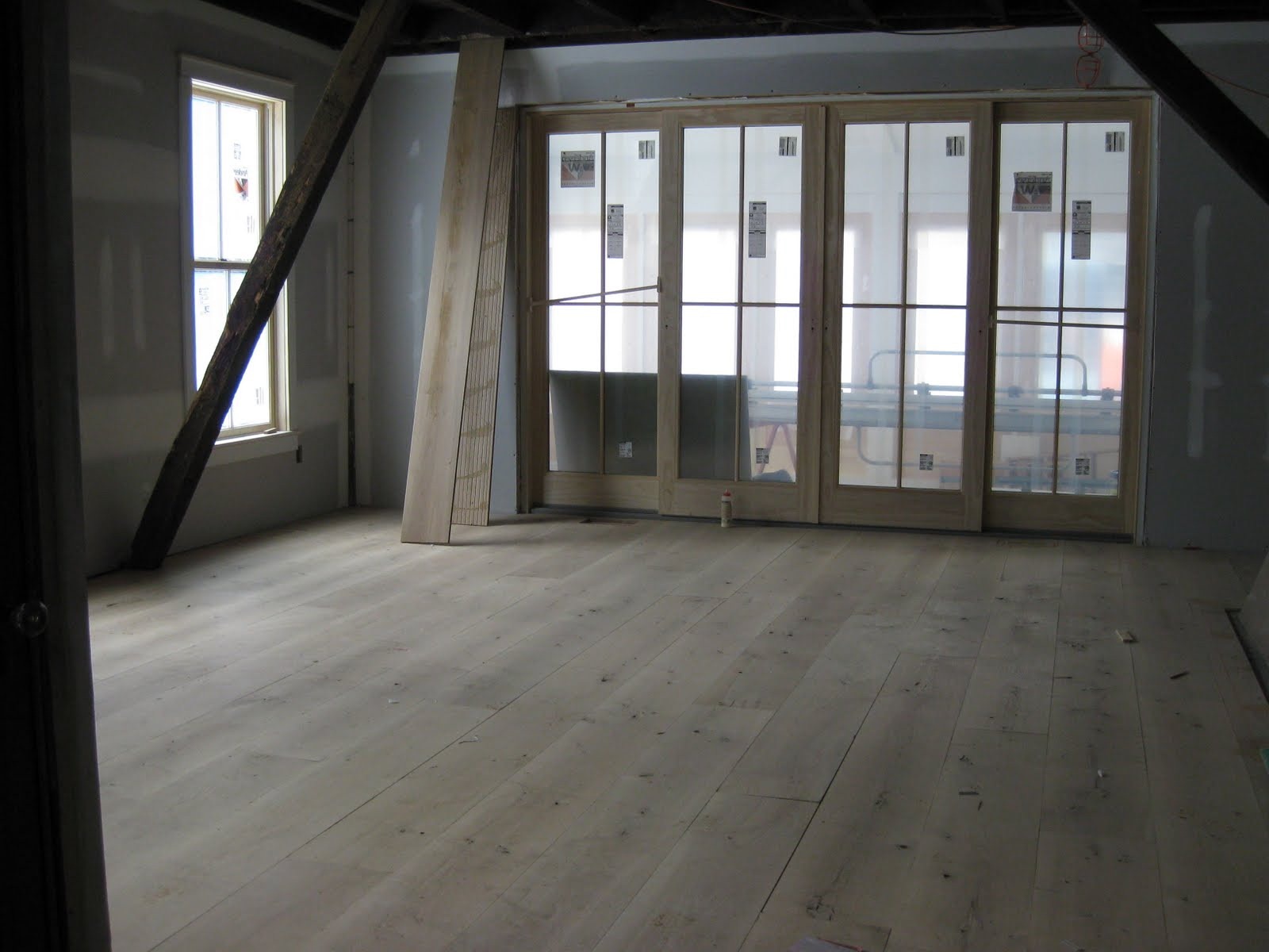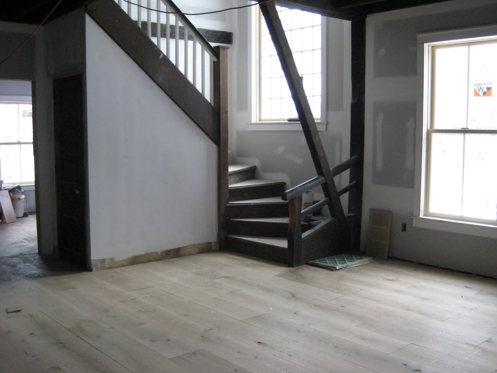 This week begins the 5th month since construction began. We had been a way for a few days, but were anxious to get to the house this morning to see how much progress was made with the wood flooring. It had been a rainy/ snowy/ rainy end to last week, so we were not sure if that would have any impact on the schedule. It turns out the answer was a resounding no, as all of the wood has been installed and it looks GREAT!