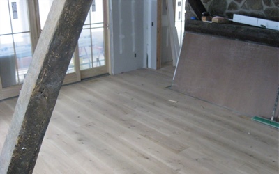 We are using white oak throughout, downstairs we are using an 11" wide plank and upstairs we are using a 5" wide plank. Here are some photographs: